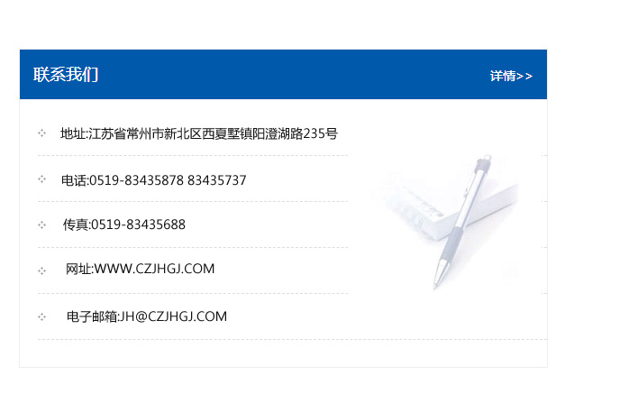 傳真:0519-83435688    郵編:213135    網址:WWW.czjhgj_com.zhsate.com    電子郵箱:JH@czjhgj_com.zhsate.com